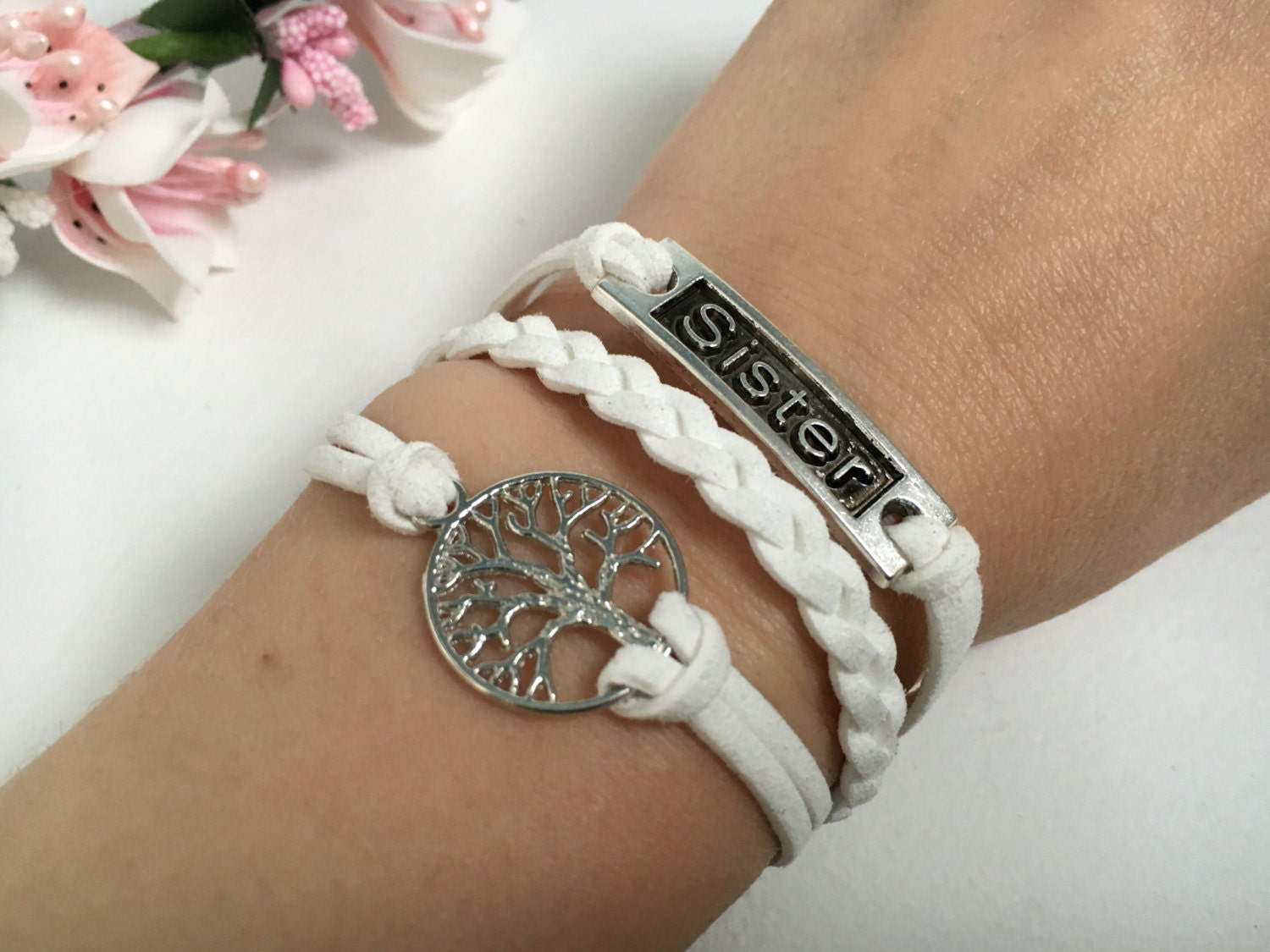 Family tree sister bracelet Sister jewelry Family tree jewelry Sibling jewelry White sister bracelet Tree of life bracelet Gift for sister