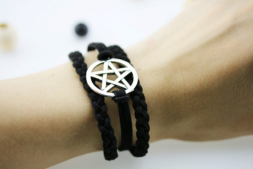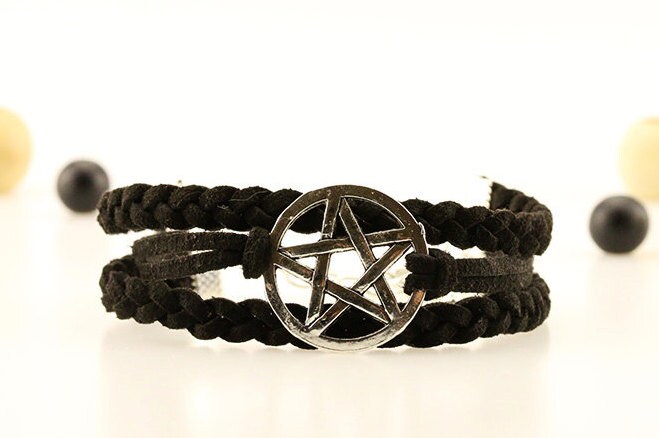 Pentagram bracelet 5 point star jewelry Pentacle bracelet Pentagram star Pagan occult wicca Black bracelet Occult jewelry Pagan bracelet